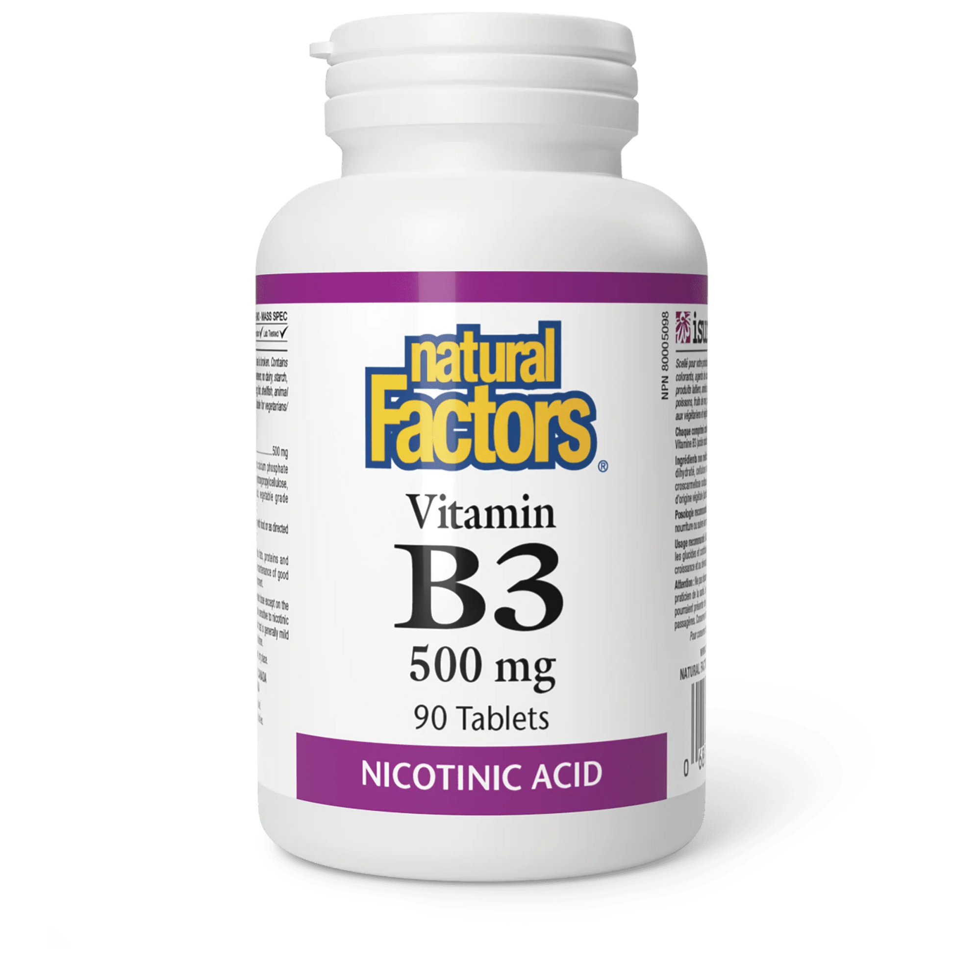 Natural Factors Vitamin B3 contains vitamin B3 in the nicotinic acid form, which has been shown to be the most effective form for its positive impact on the cardiovascular system. Available in both standard and no flush formats.