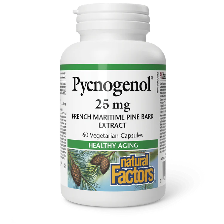 As we age, inflammation and free radicals cause increasing damage, threatening the health of delicate tissues. Natural Factors Pycnogenol® is a natural plant extract derived from French maritime pine bark (Pinus pinaster) that strengthens cell membranes.