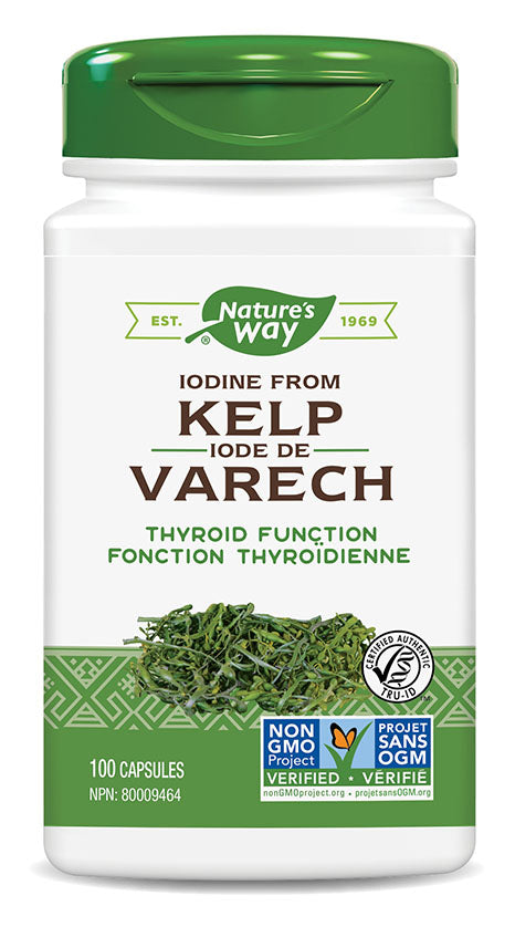 Nature's Way Kelp is a source of iodine and helps in the function of the thyroid gland. Nature's Way Kelp is Vegetarian, TRU-ID certified and non-GMO Project verified.