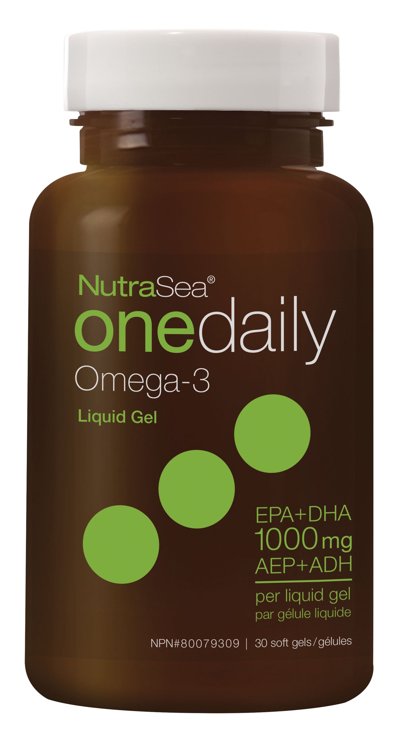 NutraSea One Daily premium quality omega-3 liquid gels have a fresh mint flavour and no fishy burp-back. With a balanced ratio of 575 mg EPA and 425 mg DHA per dose, NutraSea is an easy way to get your omega-3 and is a great choice for anyone looking for a pure and balanced omega-3. NutraSea supports the maintenance of good health, cardiovascular health and brain function.